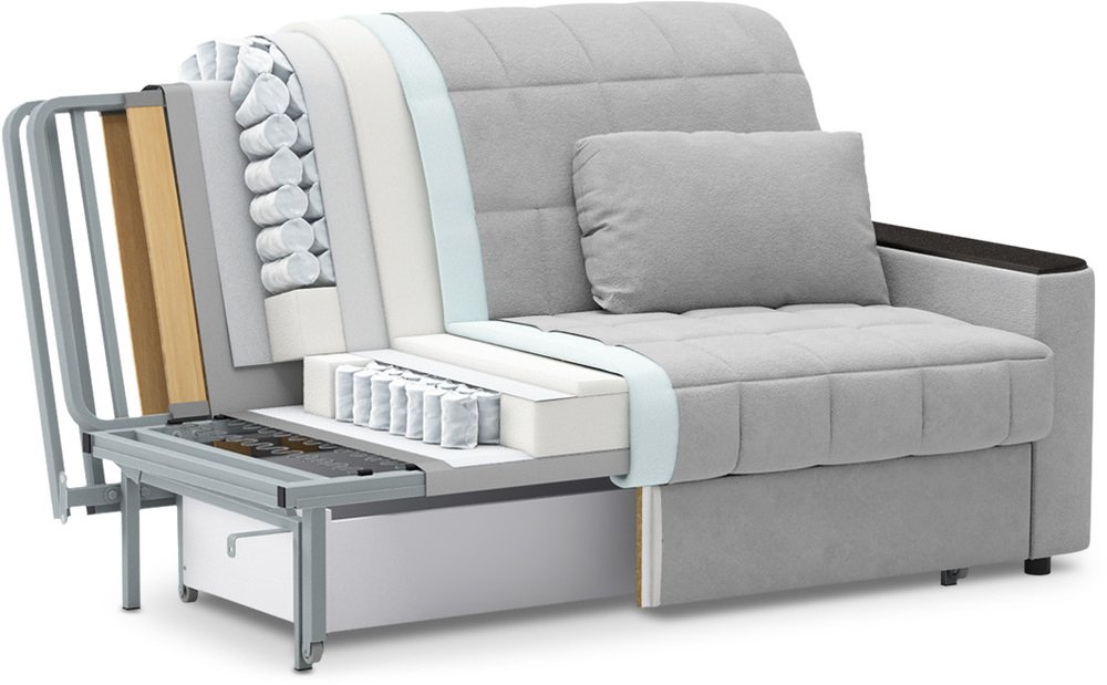 Хороший универсальный диван, средний по удобству для сидения, но хороший для сна. Идеальное решение для гостевой комнаты.