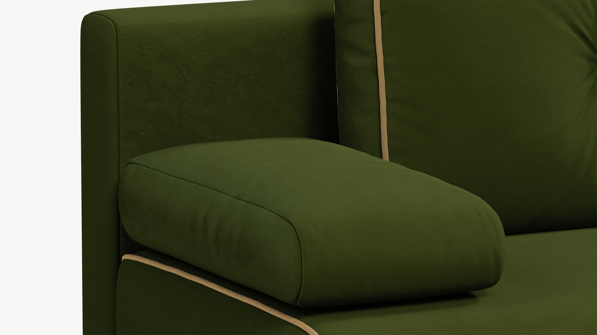 Контрастный кант, украшающий «срезы» на корпусе и приспинных подушках MOON FAMILY 043, лишь усиливает визуальную идентичность элементов, поддерживая эффект наборности.
