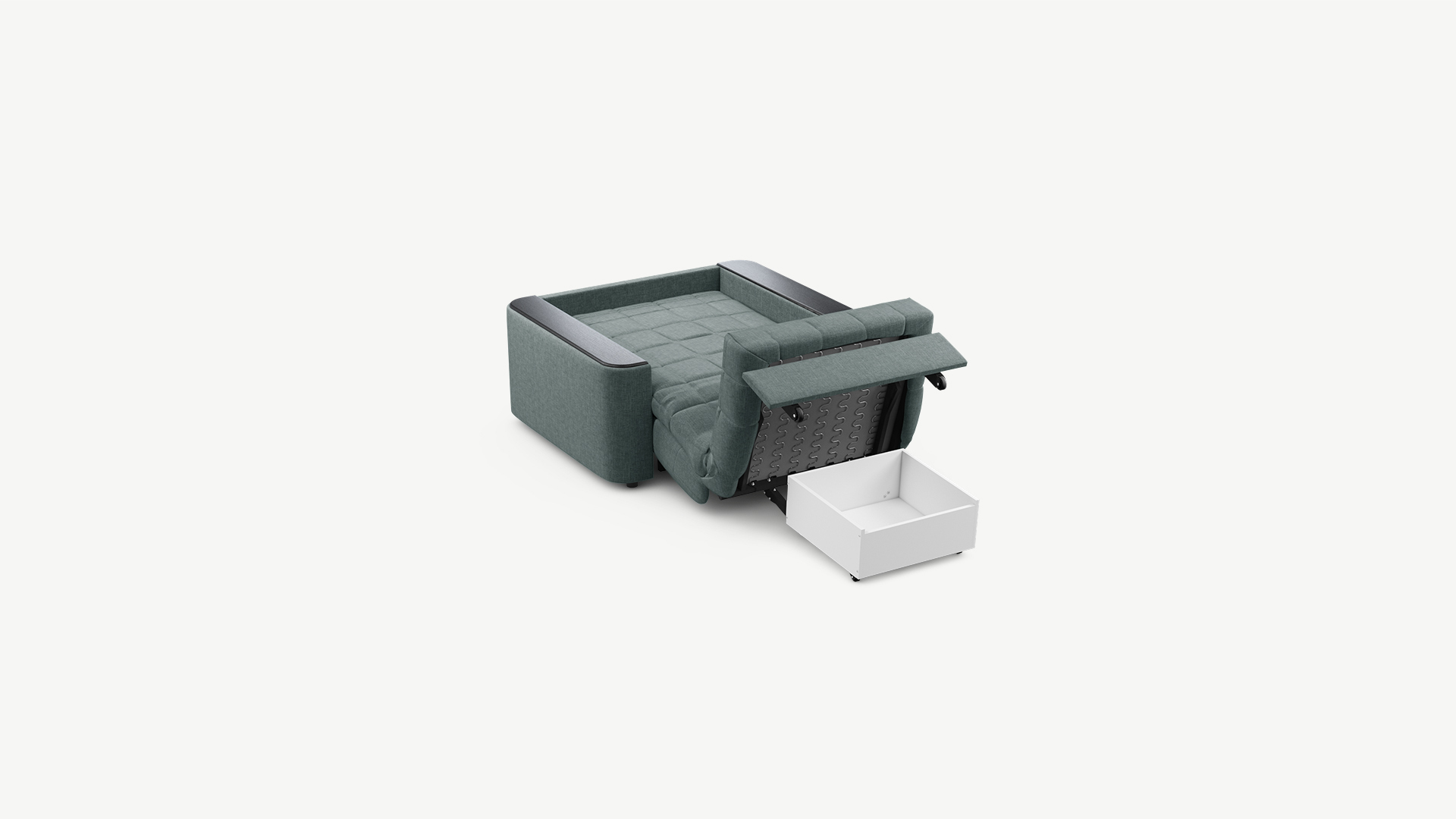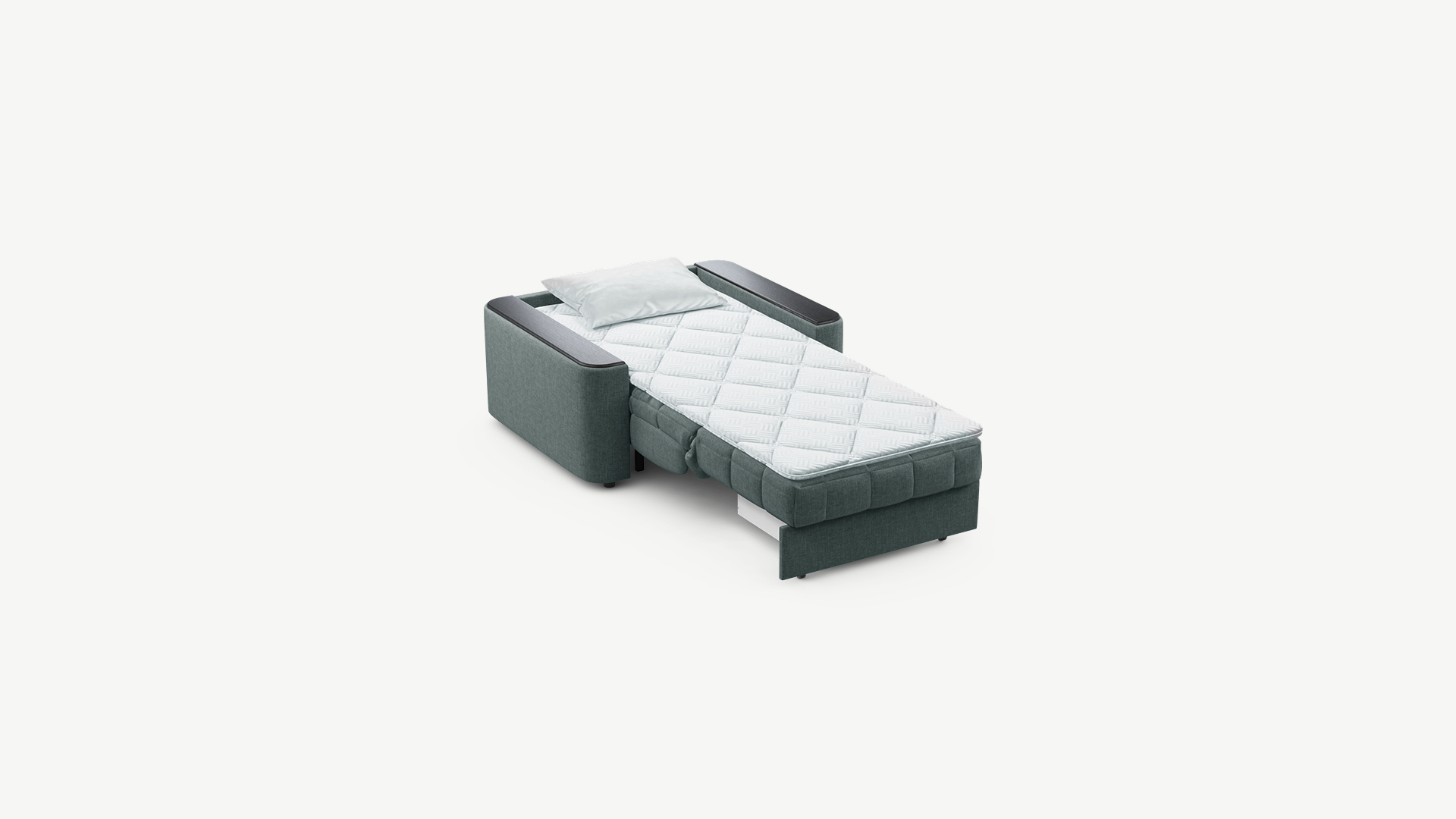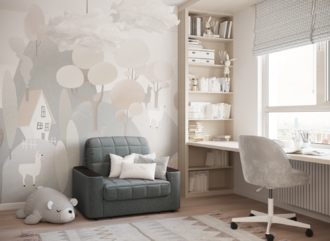 Объемные подлокотники — стильная деталь, отлично вписывающая кресло-кровать в интерьер современной городской квартиры.