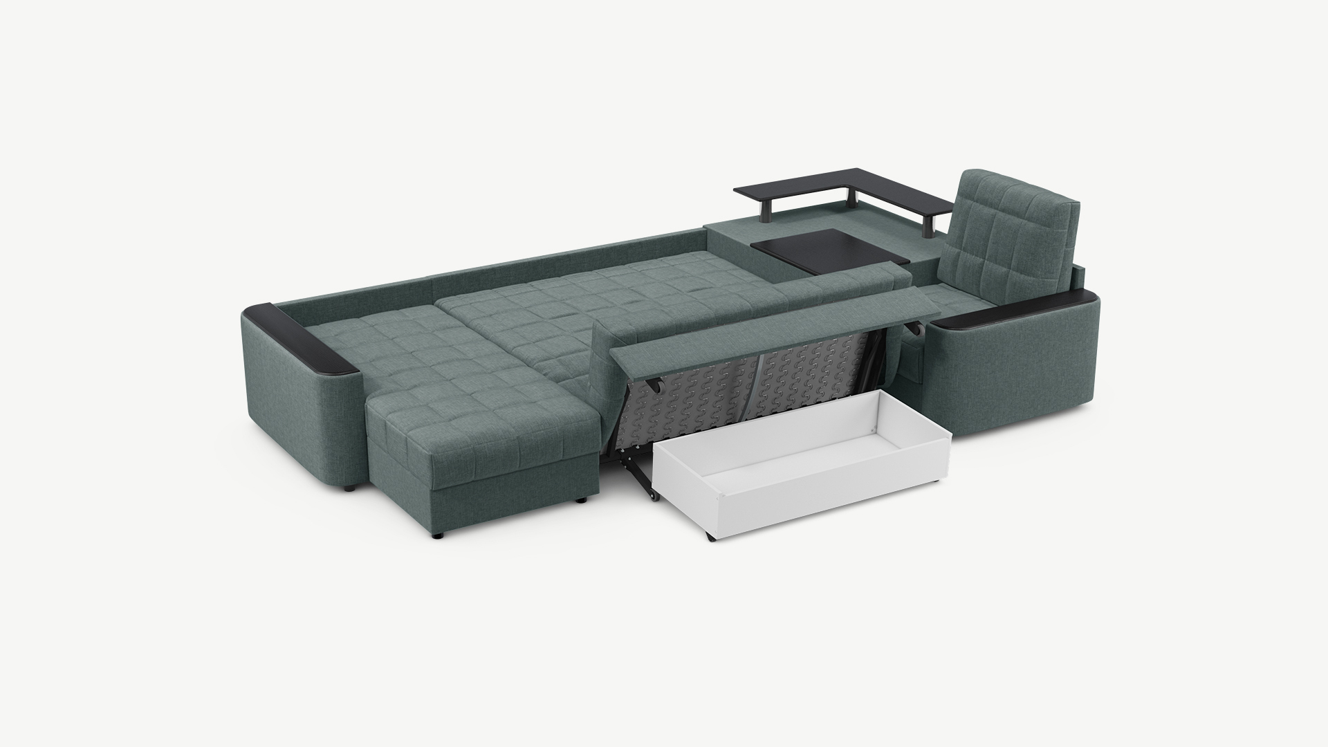 Выбирая угловой диван со столиком, Вы сможете проводить время с максимальным комфортом, многократно повысив функциональность дивана. Все дело в том, что под столешницей модуля расположена вместительная емкость для хранения. Кроме того, поверхность столика — идеальное пространство для чаепития в приятной компании, а также место для множества актуальных мелочей — от ноутбука до косметики.
