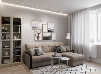 Спинка, выполненная в обивочной ткани, позволяет ставить диван в центре комнаты и зонировать пространство.
