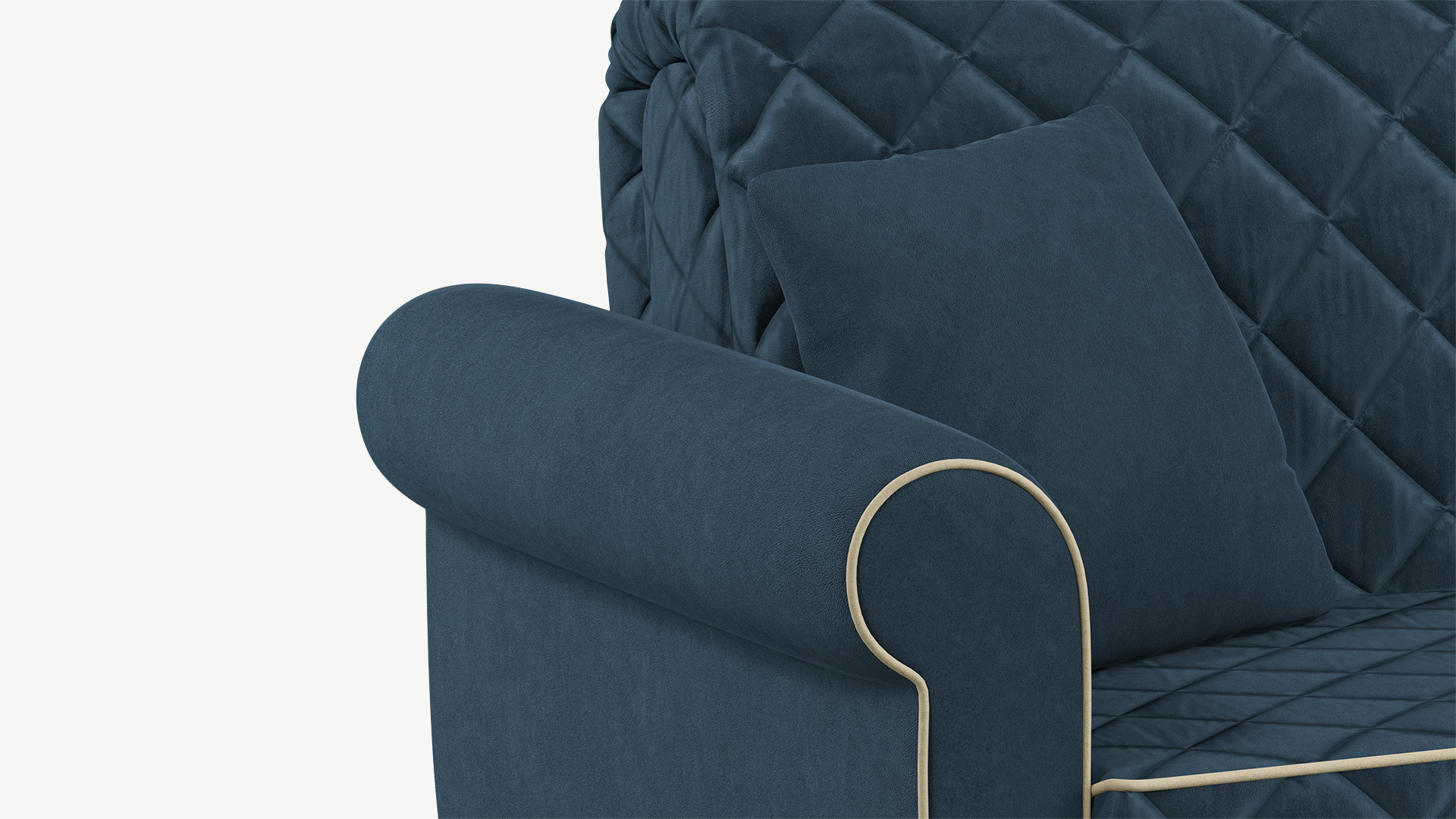 Пропущенный по краю декоративный кант — стильный штрих, подчеркивающий форму.