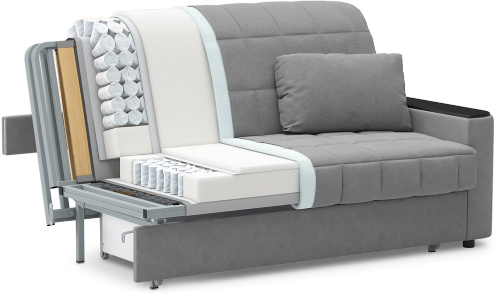 Хороший универсальный диван, средний по удобству для сидения, но хороший для сна. Идеальное решение для гостевой комнаты.