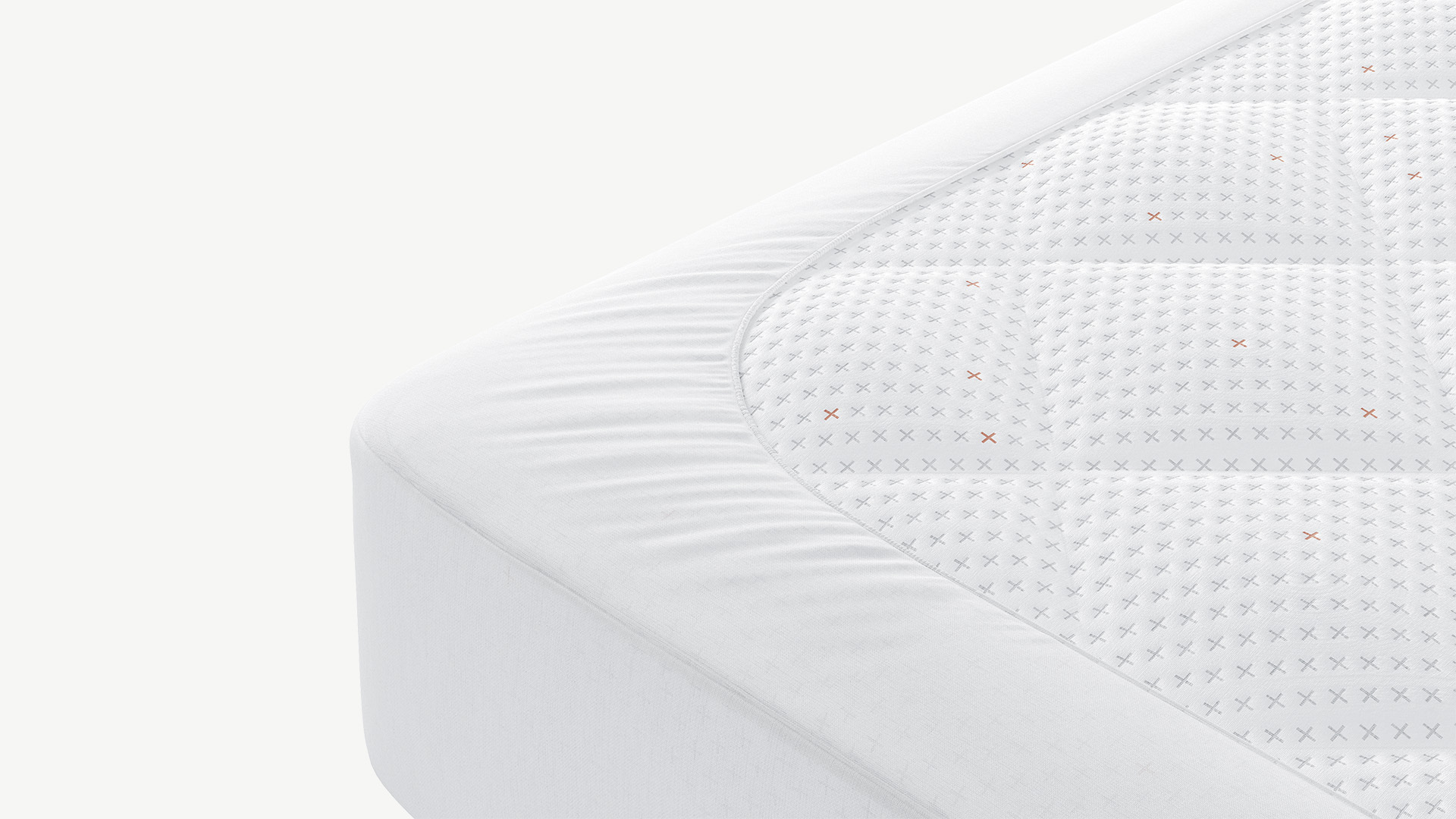 Верх чехла выполнен из прочного поликоттона с нежной сатиновой поверхностью и простеган на тонком слое воздушного волокна для дополнительной мягкости. Влагонепроницаемая пористая мембрана с внутренней стороны оберегает поверхность от проникновения жидкости и загрязнений, не нарушая естественную циркуляцию воздуха на спальном месте.