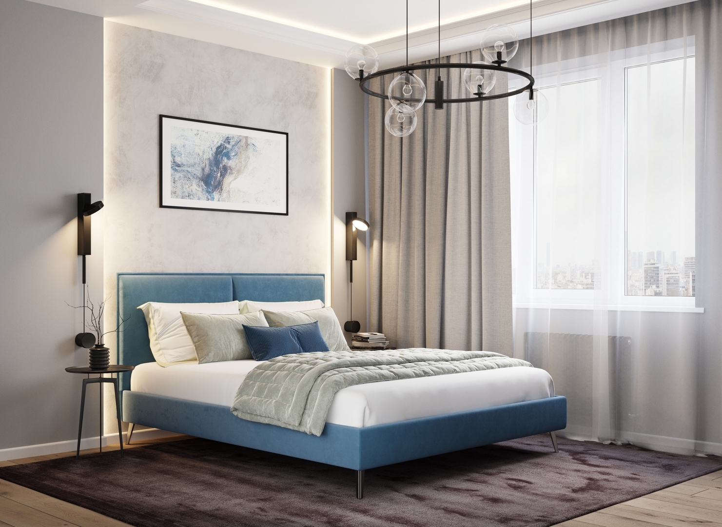 Самая клиентоориентированная компания! Заказали кровать в дизайнерский интерьер. По проекту нужна была кровать в черном цвете. Во многих магазинах черный был недостаточно насыщен, поэтому мы искали долго, пока не пришли в Moon. Менеджер принесла несколько палитр с цветами и мы нашли свой идеальный черный! Такой же как в нашем проекте! Черный велюр, нежный бархатный, тактильно приятный! В этой кровати есть возможность менять глубину рамы. Мы выбрали высокий матрас, но он органично смотрится, не перекрывает изголовье.