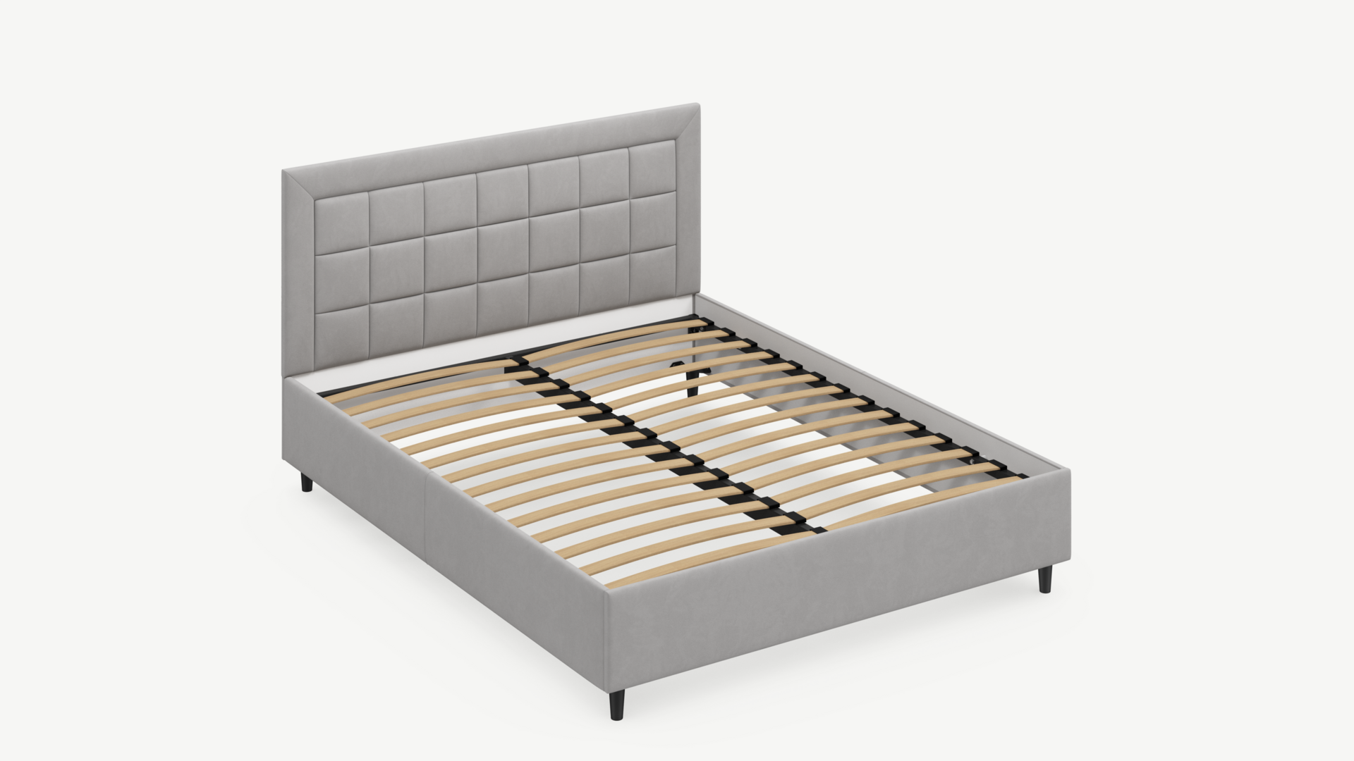 Рама, изголовье и царги надежно крепятся между собой, обеспечивая прочность и устойчивость кровати.