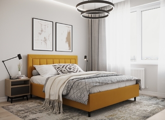 Стежка помещена в центр изголовья и обрамлена, словно картина. Объемные царги становятся гармоничным дополнением образа и завершают цельную фигуру кровати.