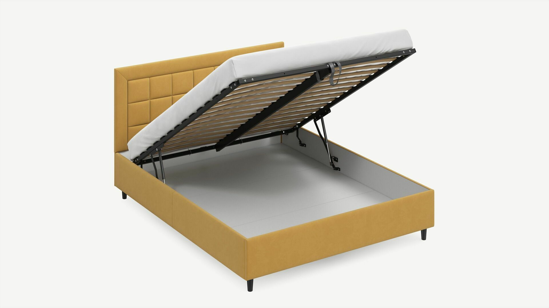 • Скрытая под основанием вместительная емкость без внутренних перегородок позволяет использовать всю площадь подкроватного пространства для хранения вещей.