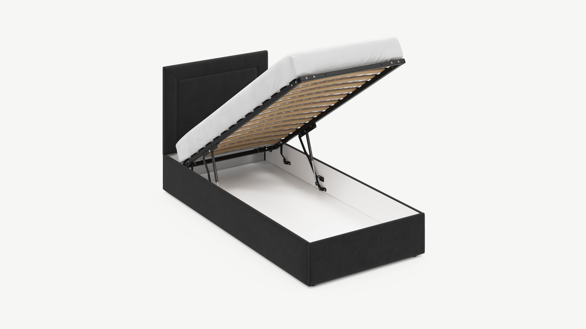 Регулируемый подъемный механизм с газовыми амортизаторами позволяет плавно и бесшумно поднимать и опускать спальное место.