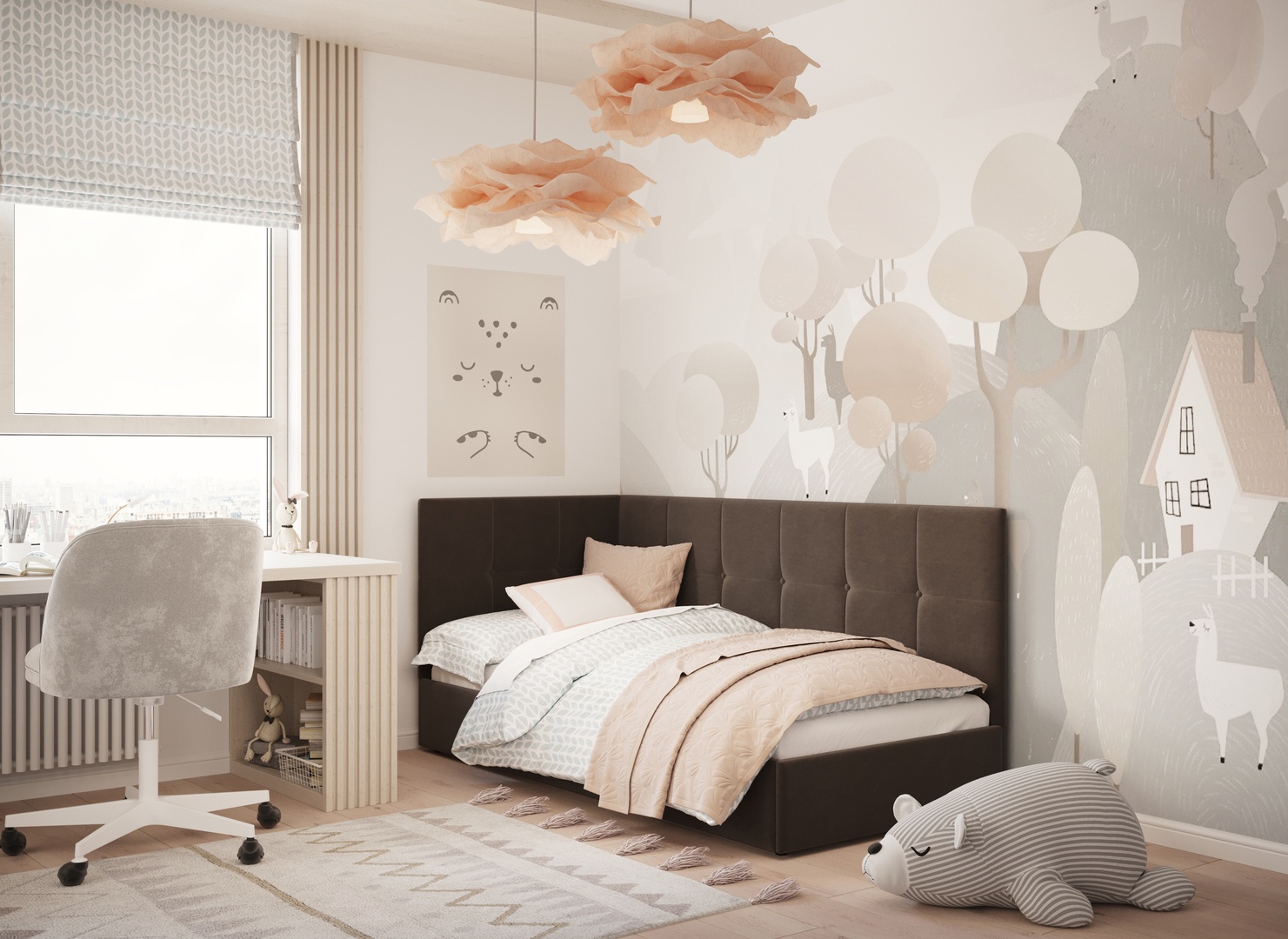 MOON FAMILY 1261 объединяет функциональность и стиль, создавая гармоничное пространство для отдыха и творчества. Кровать доступна в левостороннем и правостороннем исполнении, что позволяет легко адаптировать ее под любые интерьерные особенности.