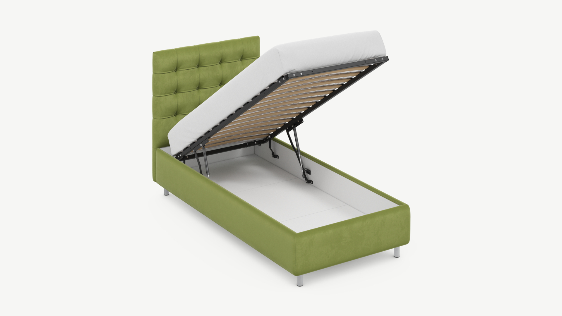 • Скрытая под основанием вместительная емкость без внутренних перегородок позволяет использовать всю площадь подкроватного пространства для хранения вещей.