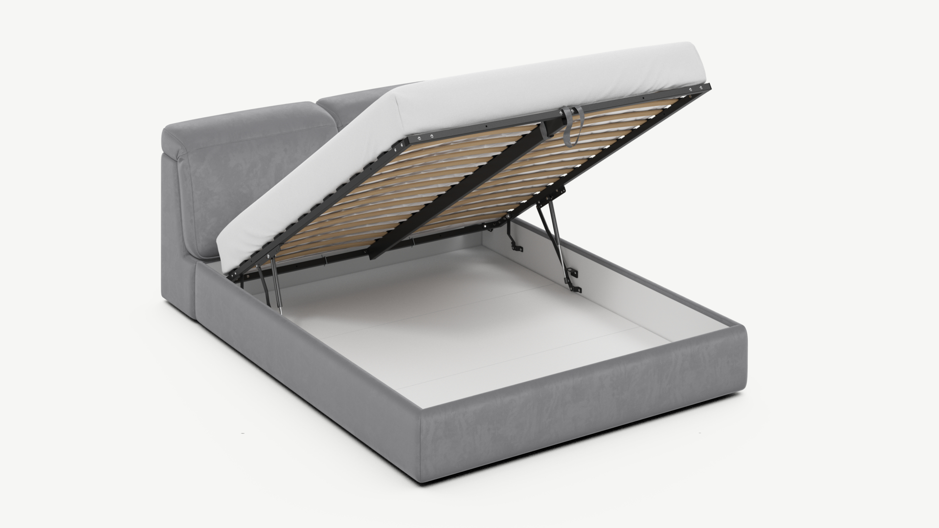 • Скрытая под основанием вместительная емкость без внутренних перегородок позволяет использовать всю площадь подкроватного пространства для хранения вещей.
