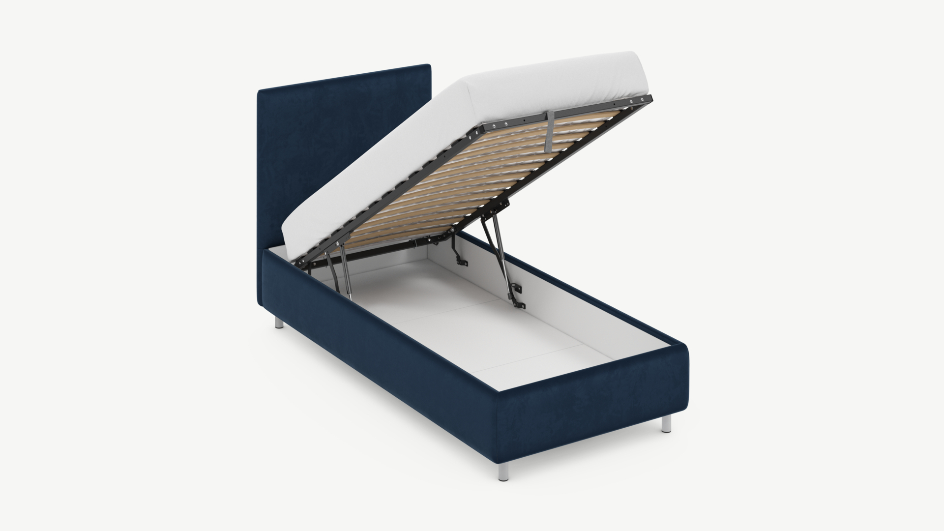• Скрытая под основанием вместительная емкость без внутренних перегородок позволяет использовать всю площадь подкроватного пространства для хранения вещей.